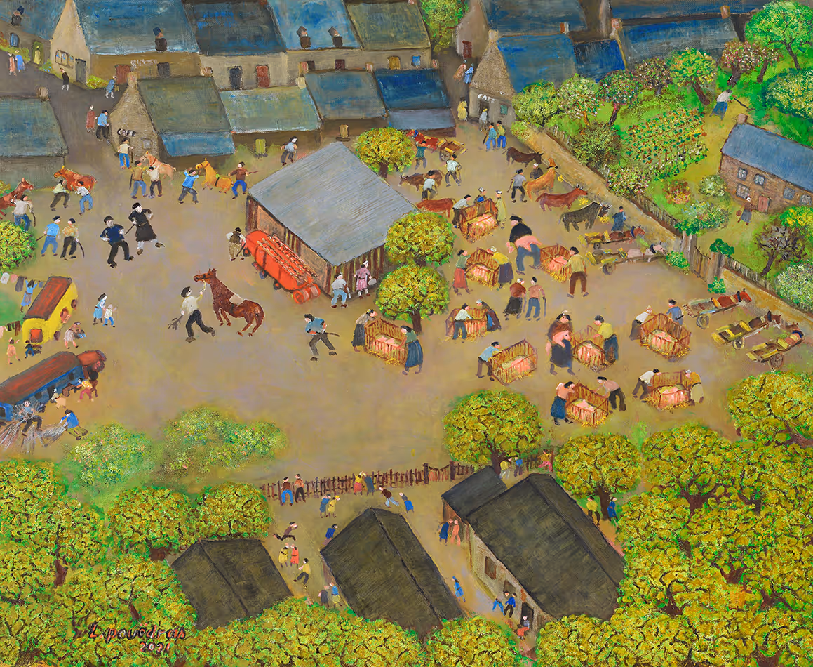 Le nomadisme a souvent fait l'objet de stéréotypes : gitans, saltimbanques, roms ...Baudelaire disait bohémianisme en évoquant le vagabondage.Peu importe pour nous autres enfants d'un petit village du Morbihan.Alors que nous étions proches de la pauvreté, voilà que passent parmi nous des " gens " qui nous semblaient plus pauvres que nous !Ils nous intéressaient.Nous étions curieux, méfiants et admiratifs à la fois.Leur présence était appréciée pour la différence qu'ils apportaient.Dans la toile, il fait froid, nous venons de quitter la cantine (installée dans un café du hameau) pour rejoindre l'école proche.Par cette froide journée, leur pauvreté nous semblait difficile à supporter, aussi, leur courage nous impressionnait.
