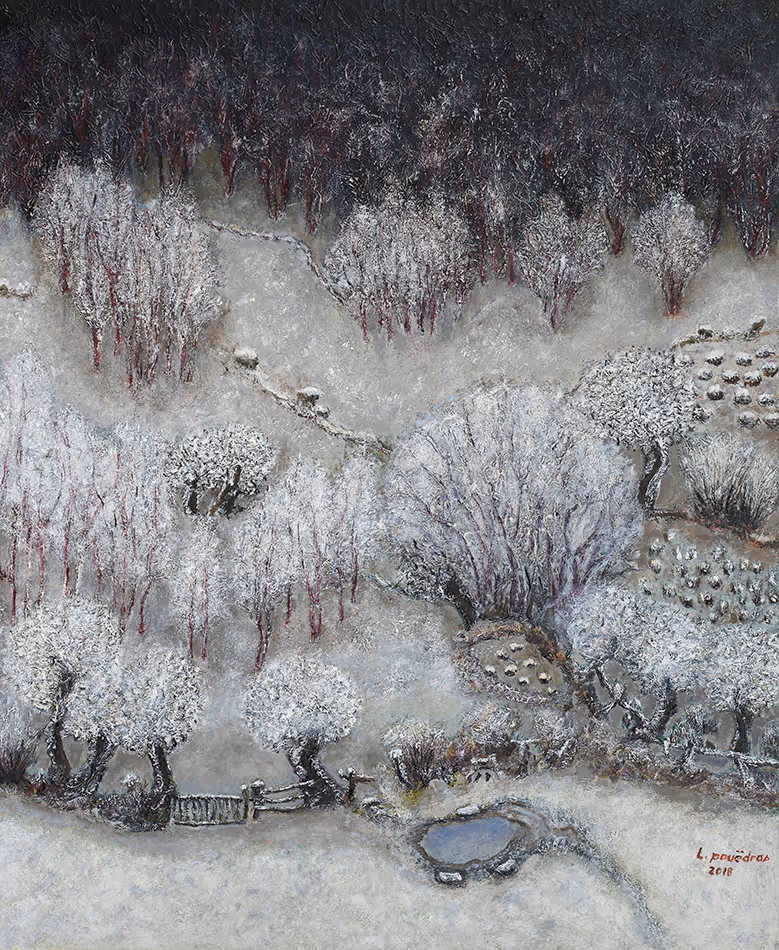 C’est l’hiver. Après le gel nocturne, une fine couche de neige s’est posée sur ce lieu où prairies et friches se rejoignent. Rien ne bouge. C’est le sommeil hivernal. Cependant, le réveil est proche. Sous cette blancheur la sève est déjà au travail. Février et mars la feront monter au sommet des arbres. Avril se chargera d’installer le printemps. Flore et faune pourront voir arriver les gens des villages. Une brouette chargée d’une lessiveuse arrivera pour un premier lavage de printemps. Le corbeau posera son nid sur la tête d’un chêne « têtard » En juin les premières faux se présenteront. Les charrettes suivront ; vidant les prairies de leur foin. Place aux troupeaux que les enfants accompagneront matin et soir durant l’été. En septembre, c’est le chanvre qui prendra place dans le « poul-coah », de grosses pierres le maintiendront sous l’eau, le temps du rouissage. L’automne est là, les arbres abandonnent leurs feuilles. L’hiver est proche et le lavoir peut à nouveau retrouver sa pause.